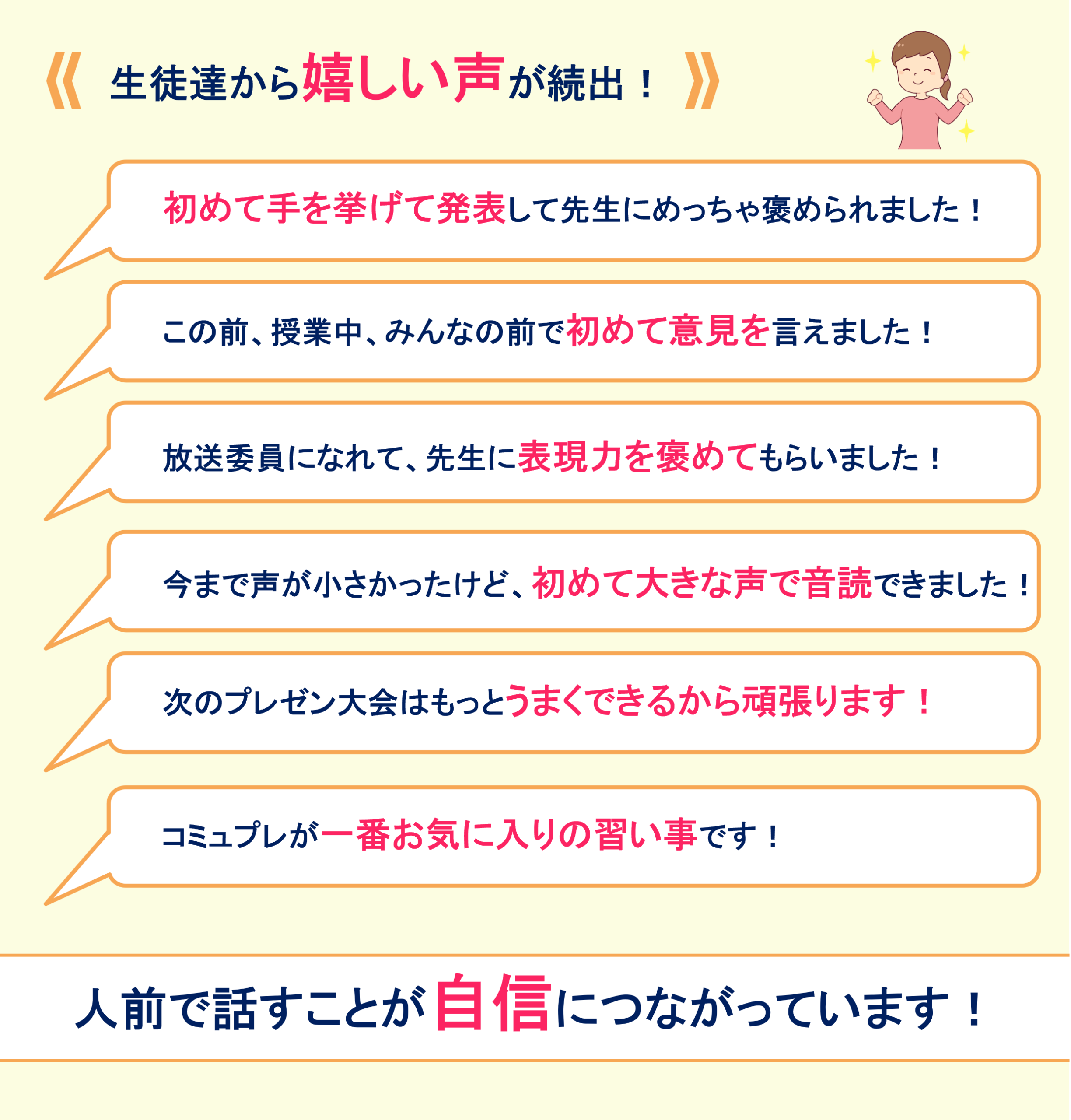 大勢の前で話す経験が、子ども達の自信に変わっていきます!ぜひ実感されてください!
